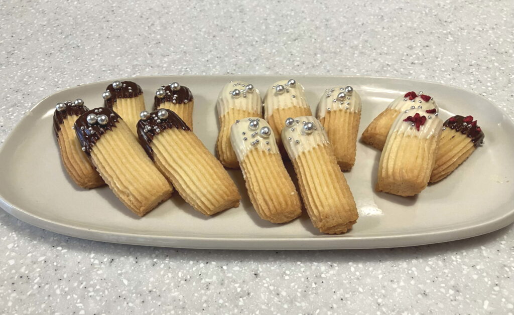 食感サクサクでとてもおいしいです。チョコのコーティングとアザランで、すっかりクリスマスの装い。素敵です。
